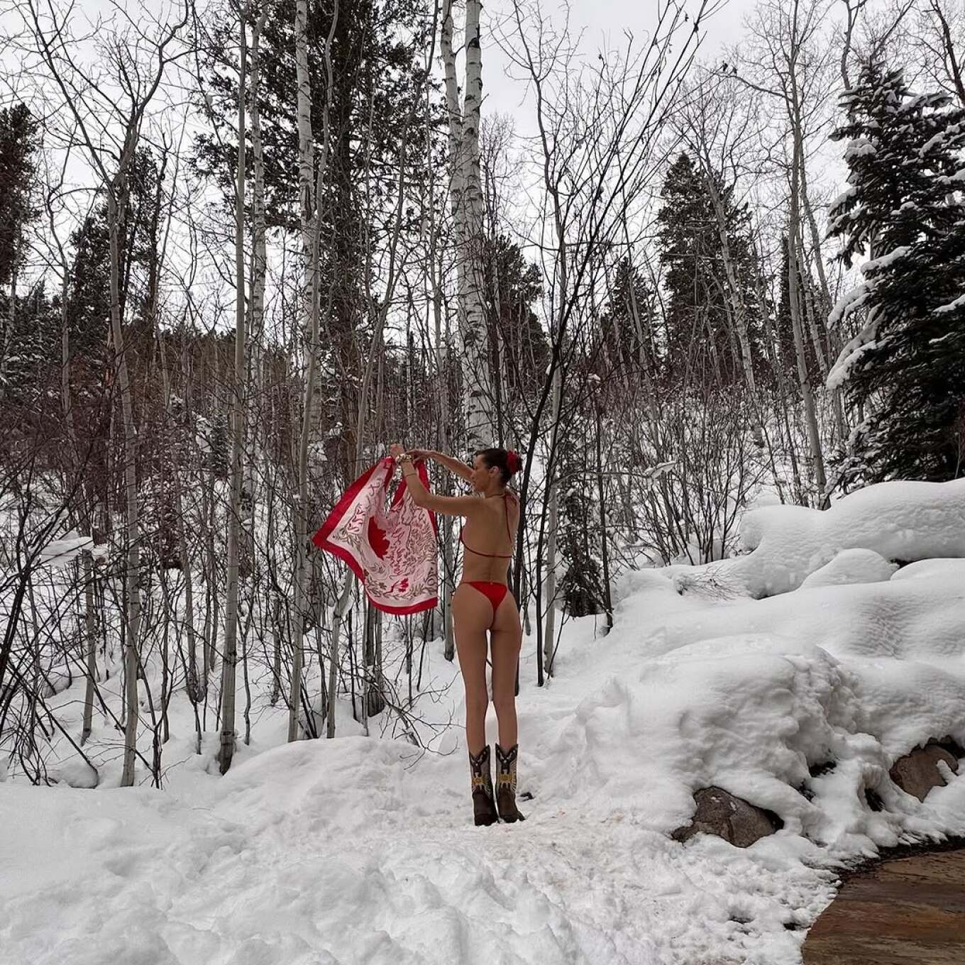 Φορώντας μονάχα ένα κόκκινο μπικίνι και καουμπόικες μπότες, η Μπέλα Χαντίντ φωτογραφήθηκε σε ένα χιονισμένο δάσος και στη συνέχεια, μοιράστηκε τα στιγμιότυπα με τους διαδικτυακούς της φίλους.