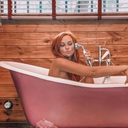 Συγκεκριμένα, η hot Σίσσυ Χρηστίδου μπήκε σε μια vintage μπανιέρα και πόζαρε ολόγυμνη κρατώντας το τηλέφωνο της μπανιέρας.