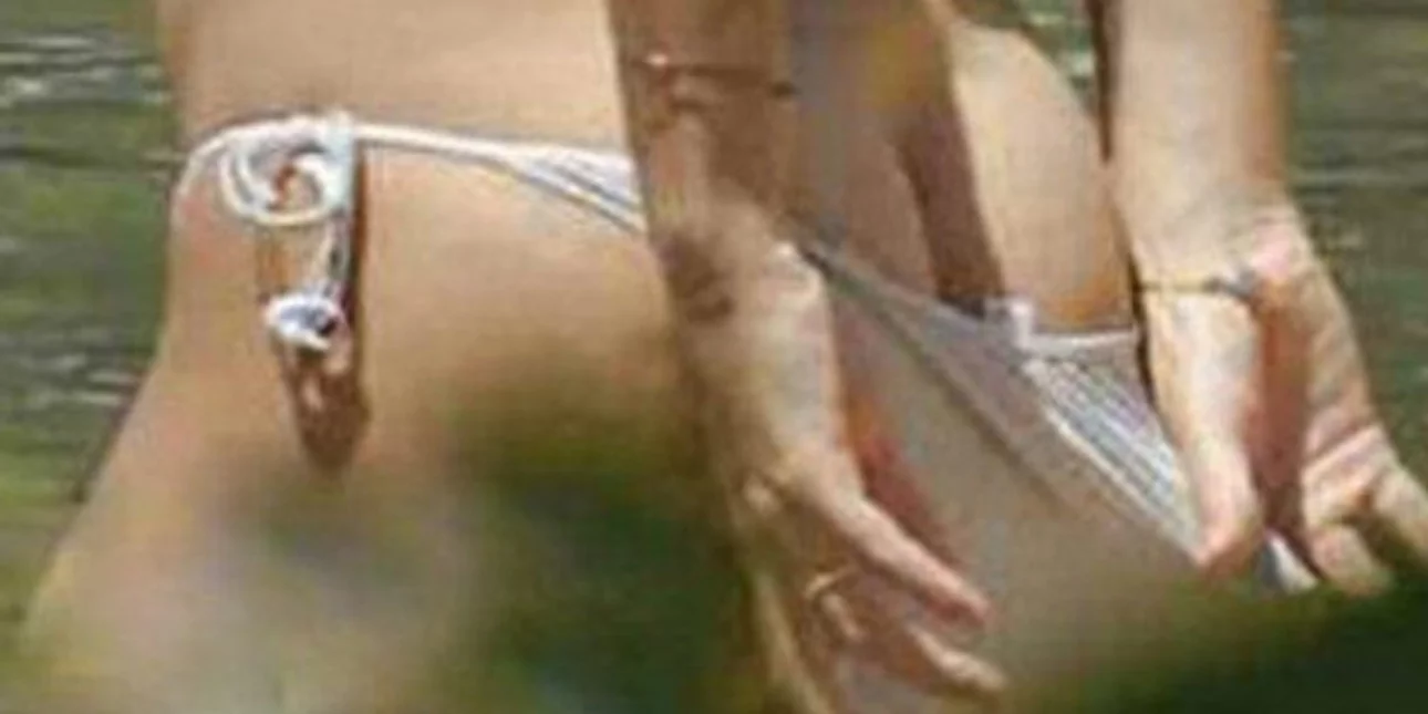 Στις φωτογραφίες που δημοσιεύει το περιοδικό Ciao, η Ελένη Μενεγάκη η οποία φορά ένα μικροσκοπικό λευκό μπικίνι, καθώς σηκώνεται από την ξαπλώστρα της για να μπει στη θάλασσα, χωρίς να το θέλει, αποκαλύπτει την «πίσω όψη» του σώματός της…
